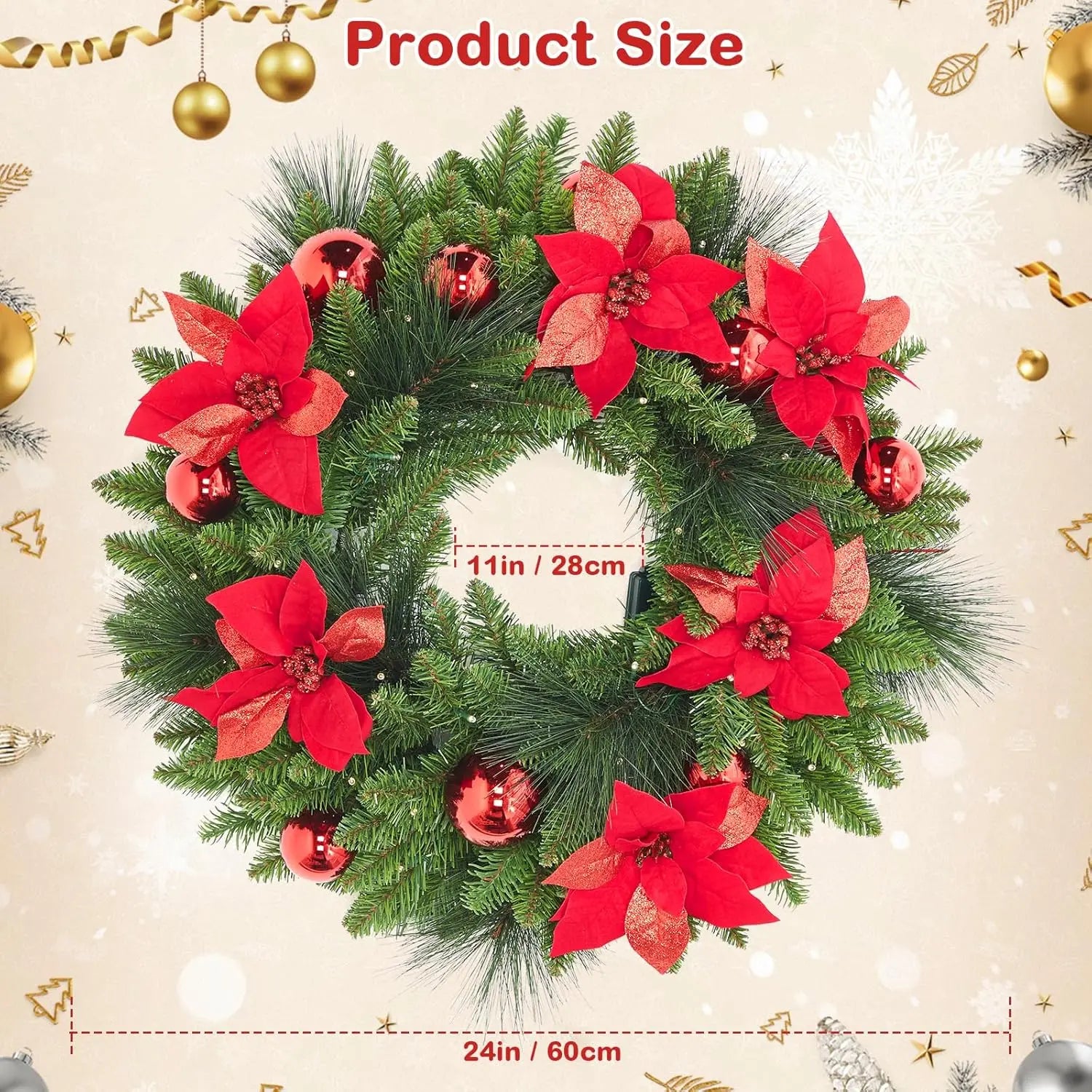 Create instant festive warmth with a 24-inch pre-lit wreath that brightens doors, mantels, and windows with a subtle winter glow.