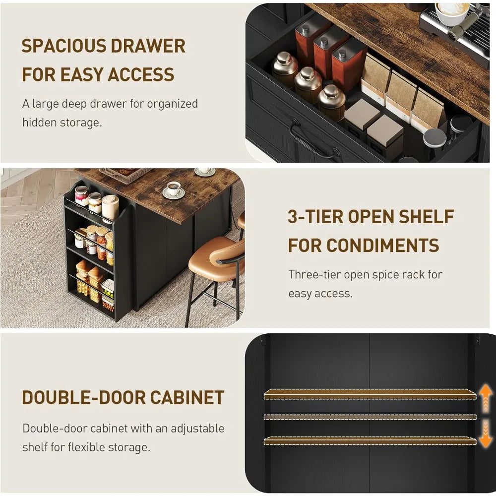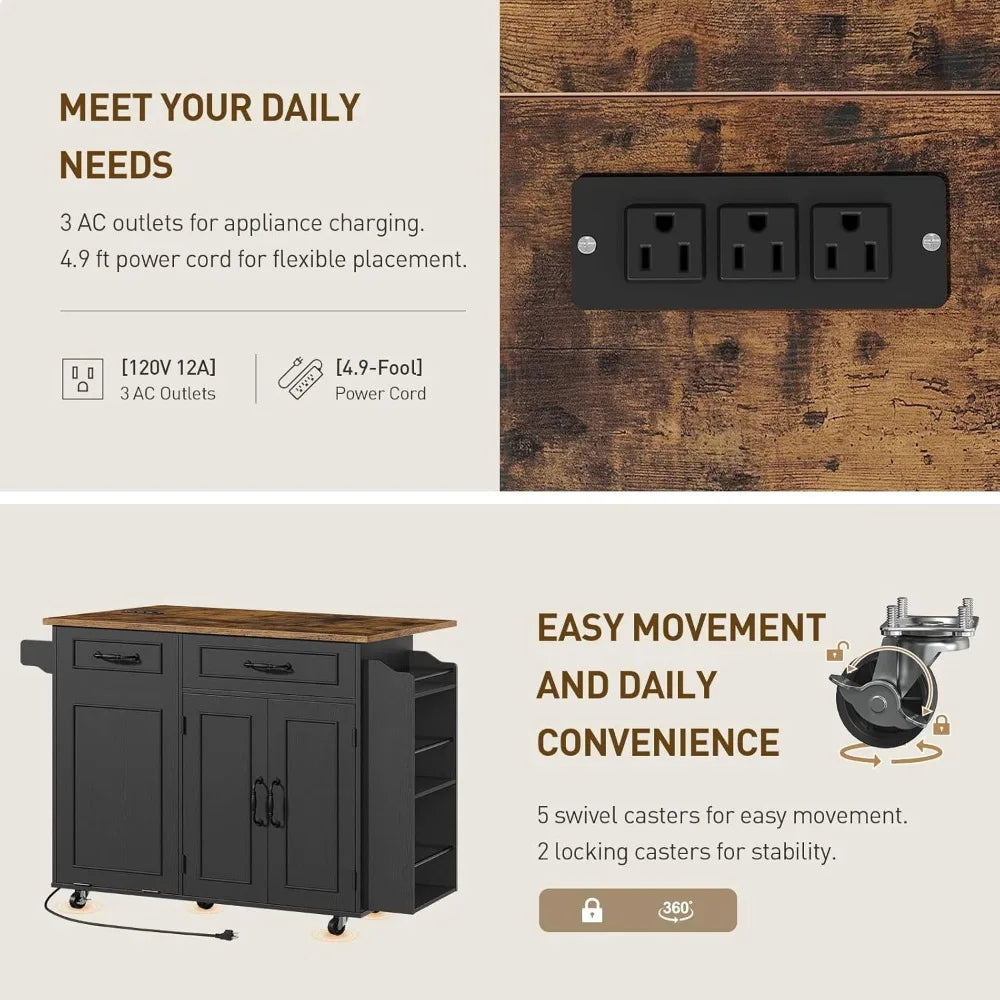Ralgend Kitchen Island Built In Outlet And Foldout Sides