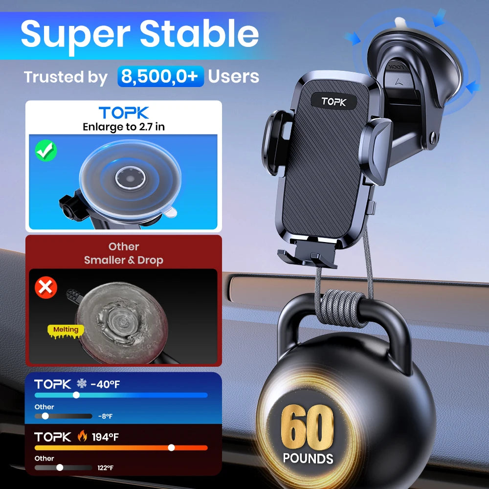Keep your phone secure and within reach on every drive with the TOPK Car Phone Holder Mount 2 In 1 Handsfree Stand.